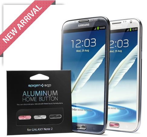 Spigen SGP ได้ผลิตสติ๊กเกอร์ปิดปุ่มโฮมของเครื่อง Galaxy NOTE 2 ออกมาขายเสริมบุคลิกและความไฮโซของพี่เบิ้ม ด้วยวัสดุอลูมิเนียมแท้ 100%