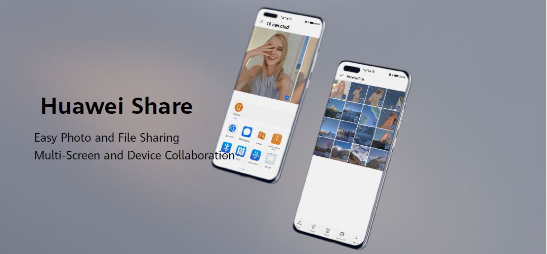 นอกจากนี้ยังมีฟีเจอร์ Huawei Share ที่อำนวยความสะดวกในการแชร์ไฟล์หรือหน้าจอจากสมาร์ทโฟนสู่แล็ปท็อป หรือดีไวซ์ต่าง ๆ ของหัวเว่ยที่รองรับได้อย่างรวดเร็ว ให้ผู้ใช้สามารถใช้โปแกรมแล็ปท็อปทำงานบนหน้าจอสมาร์ทโฟนได้ รวมถึงการรับสายและวิดีโอคอล
