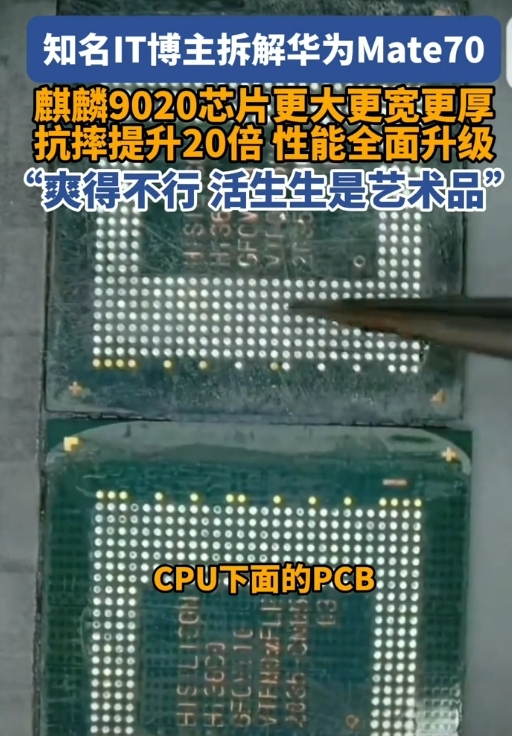 บล็อกเกอร์ชาวจีน Yang Changshun Repairman ได้แกะเครื่อง Huawei Mate 70 RS Ultimate และถอดบัดกรีชิปเซ็ตออก พบแผงวงจรของ Kirin 9020 มีขนาดที่ใหญ่กว่า Kirin 9000 รุ่นก่อนหน้า แต่ยังไม่มีการเปิดเผยข้อมูลเกี่ยวกับเทคโนโลยีการผลิตมากนัก