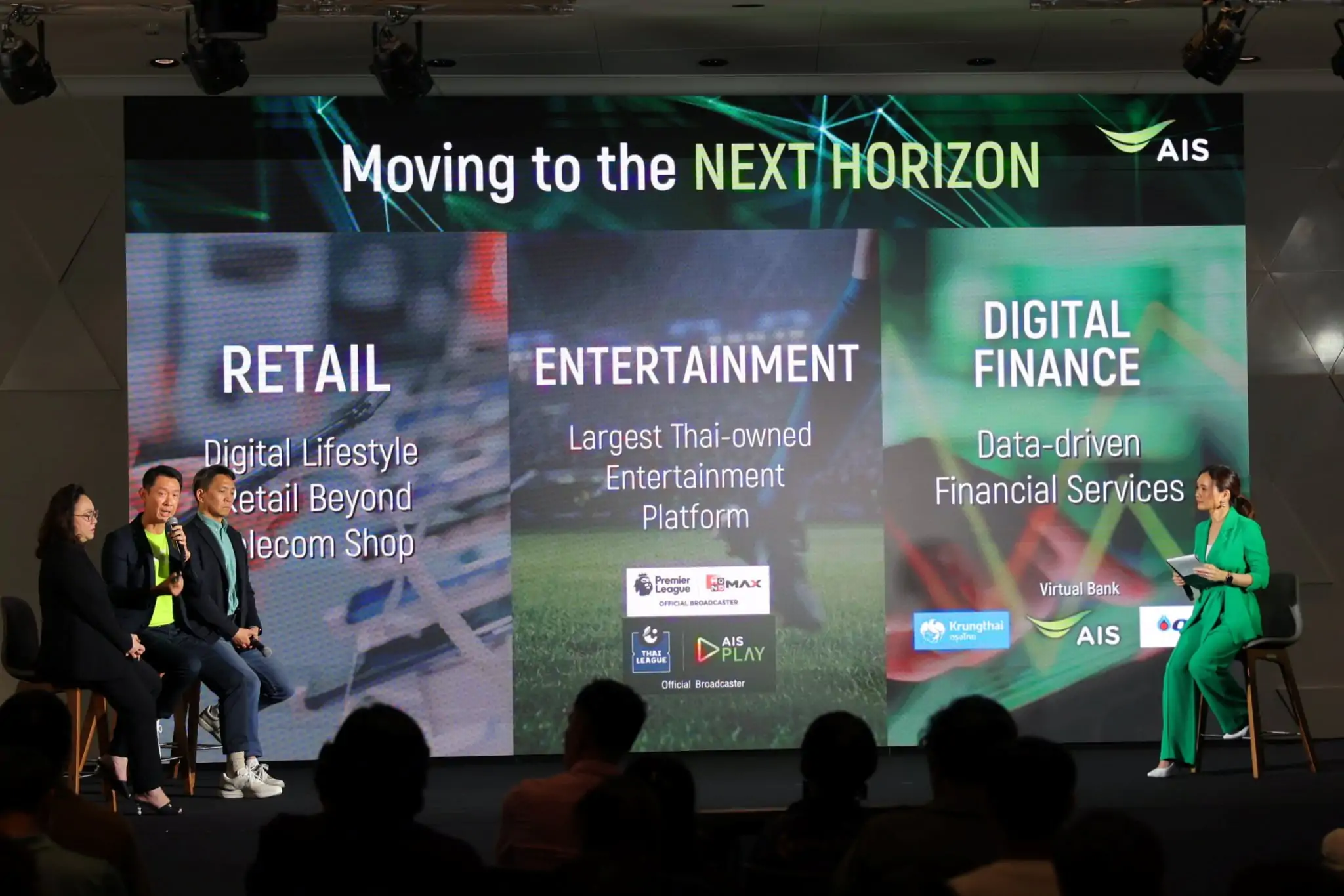 35 ปี แห่งการเติบโตทางธุรกิจ จากความแข็งแกร่งในธุรกิจหลักด้านโทรคมนาคมและอินเทอร์เน็ต ตลอด 35 ปีที่ผ่านมา วันนี้ AIS ก้าวสู่การวิวัฒน์ใหม่ ขยายสู่อนาคตด้วย 3 เสาหลักธุรกิจ ได้แก่ Retail Tech ที่ยกระดับประสบการณ์ดิจิทัลไลฟ์สไตล์ครบวงจร, Entertainment Platform อย่าง AIS PLAY ที่รวมที่สุดแห่งความบันเทิงและกีฬา และ Digital Finance ขับเคลื่อนอนาคตการเงินดิจิทัลของประเทศ โดยจับมือ OR และ KTB เพื่อเตรียมร่วมขับเคลื่อนธุรกิจ Virtual Bank เปิดโอกาสให้คนไทยเข้าถึงบริการทางการเงินได้อย่างทั่วถึง สร้างอนาคตทางเศรษฐกิจที่มั่นคงและยั่งยืนให้กับสังคมไทย