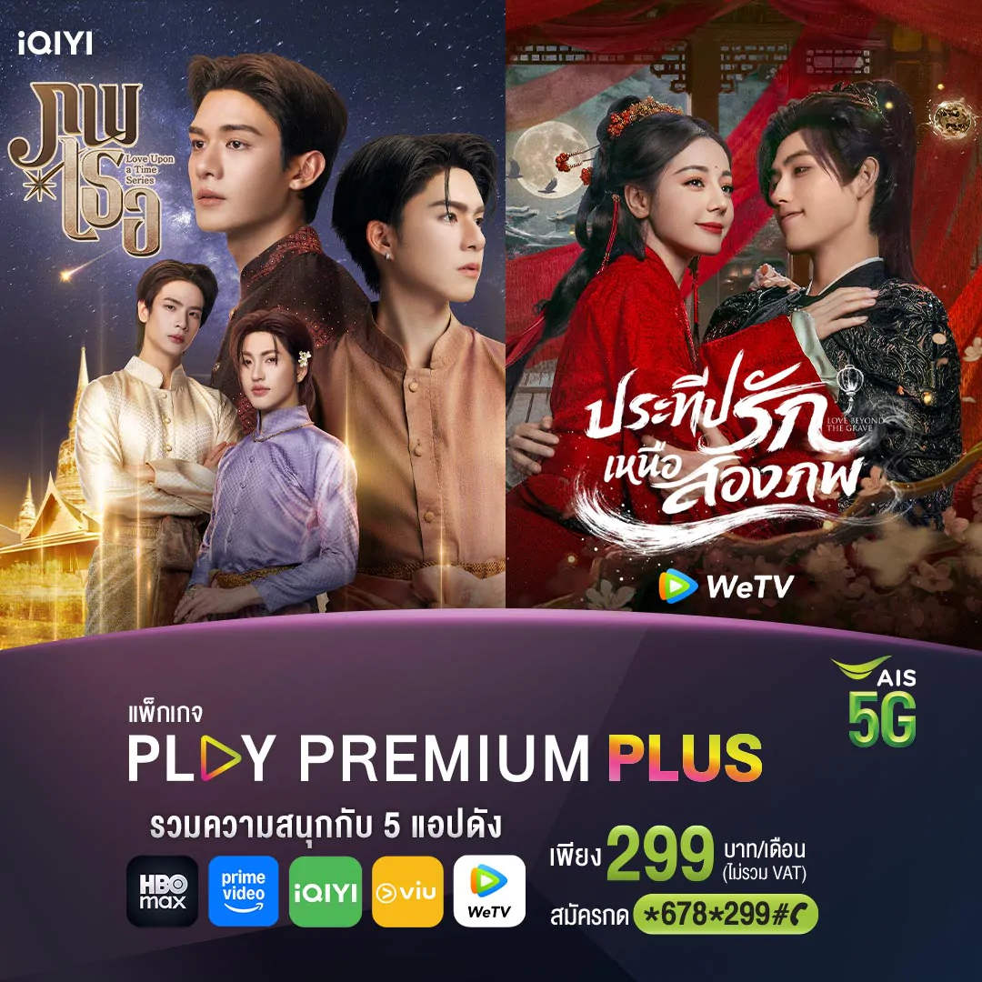 สำหรับลูกค้าที่เลือกพักผ่อนอยู่ บ้านในช่วงสงกรานต์ AIS ชวนเปิดประสบการณ์ความบันเทิ งแบบจัดเต็มผ่าน AIS PLAY กับแพ็กเกจคอนเทนต์พรีเมียม PLAY PREMIUM PLUS ที่รวมคอนเทนต์ มากมายจากแพลตฟอร์มชั้นนำไว้ ในแพ็กเดียว ทั้งซีรีส์ ภาพยนตร์ รายการวาไรตี้ และอนิเมะจาก HBO Max, Prime Video, iQIYI, Viu และ WeTV ในราคาเพียง 299 บาทต่อเดือน ให้สนุกได้เต็มอิ่ม ดูได้จุใจตลอดวันหยุดยาว ลูกค้าเอไอเอสมือถือ สมัครง่ายๆ เพียงกด *678*299# โทรออก ฟรี รวมถึงโปรเน็ตบ้าน AIS 3BB FIBRE3 พิเศษ! เฉพาะลูกค้า AIS 3BB Fibre3 เป็นเจ้าของ SMART SOUNDBAR ทันที เมื่อจ่าย 250 บาท/เดือน (จากราคาปกติ 350 บาท/เดือน) ครบ 24 เดือน* ให้สงกรานต์นี้เพิ่ มความสนุก กันทั้งครอบครัว ได้มากขึ้นกว่าเดิม เที่ยวอุ่นใจ บ้านปลอดภัย เพียงสมัครเน็ตบ้าน รับฟรี! ประกันภัยบ้านMSIG พิเศษ! คุ้ม 2 ต่อ ต่อที่ 1 รับ E-Voucher 500 บาท (ส่วนลดใช้ซื้ออุปกรณ์กล้องที่ AIS Online Store) ต่อที่ 2 รับ E-Voucher Lazada 200 บาท