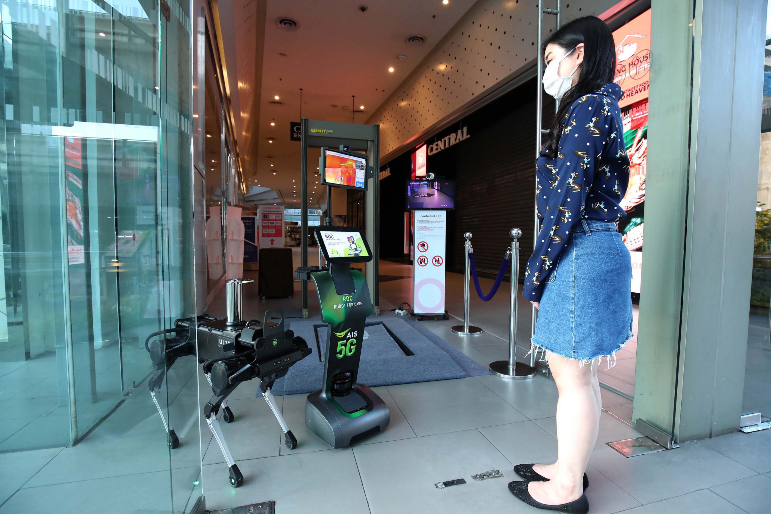 หลังจากที่ รัฐบาล โดยศูนย์บริหารสถานการณ์การแพร่ ระบาดของโรคติดเชื้อไวรัสโคโรนา 2019 (COVID-19) หรือ ศบค. ได้ออกประกาศมาตรการผ่อนปรนกิจก ารและกิจกรรมในระยะที่ 2 มีผลให้ห้างสรรพสินค้าและศูนย์ก ารค้า สามารถกลับมาเปิดให้บริการได้อี กครั้ง ทั้งนี้ เอไอเอส และศูนย์การค้าเซ็นทรัลเวิลด์ จึงได้นำขีดความสามารถของเทคโนโ ลยี 5G มาช่วยเสริมประสิทธิภาพด้านความ ปลอดภัยและสุขอนามัยของประชาชนอ ย่างเต็มที่ ทั้งการติดตั้งเครือข่าย 5G ครอบคลุมเต็มทุกพื้นที่ และการนำหุ่นยนต์ ROC และ AIS K9 ที่ทำงานบน LIVE Network 5G มาช่วยปฏิบัติหน้าที่คัดกรองและ ตรวจวัดอุณหภูมิได้อย่างรวดเร็ว และมีความแม่นยำสูง เพื่อลดการสัมผัสใกล้ชิด และป้องกันการแพร่ระบาดของเชื้อ ไวรัส COVID-19 ตอบโจทย์วิถีชีวิตยุคใหม่รับ NOW Normal พร้อมนำเทคโนโลยี 5G สร้างมาตรฐานใหม่ในการพลิกฟื้นแ ละเคียงข้างภาคธุรกิจและสังคมไท ยอย่างยั่งยืน