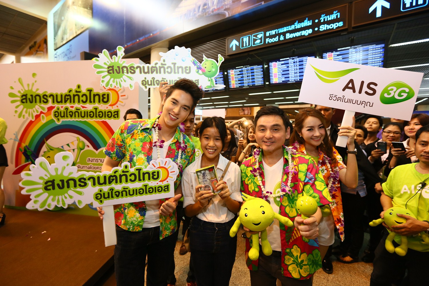 เอไอเอส 3G 2100 นำโดย คุณสมชัย เลิศสุทธิวงค์ หัวหน้าคณะผู้บริหารด้านการตลาด ร่วมส่งพี่น้องชาวไทยให้กลับบ้านไปหาครอบครัวอย่างอบอุ่น กับกิจกรรม “สงกรานต์ทั่วไทย อุ่นใจกับเอไอเอส” พร้อมแจกปืนฉีดน้ำ หมวก และซองกันน้ำอุ่นใจที่มาพร้อมกับฟังก์ชั่นกันกระแทก ป้องกันมือถือให้ปลอดภัย ให้เล่นน้ำกันอย่างสนุกสนานไร้กังวล นอกจากนี้ยังมีบริการเติมเงินให้กับลูกค้าเอไอเอส ณ ประตูสู่การเดินทางที่สนามบินดอนเมือง และสถานีรถไฟหัวลำโพง โดยมีพรีเซ็นเตอร์ เจมส์ จิรายุ ตั้งศรีสุข มาร่วมมอบความอุ่นใจในครั้งนี้ด้วย