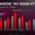 ไฮไลท์หลักก็คงต้องขอยกให้ AND Radeon 7600M XT สถาปัตยกรรม RDNA3 ที่เร็วที่สุดในตอนนี้สำหรับ GPU บนเดสก์ท็อป มีอัตราการใช้พลังงานอยู่ที่ 75-100W เพียงเท่านั้น และมี Compute Unit 30 ชุด, Shader Processors 2048 ชุด และมาพร้อมกับหน่วยความจำ 8GB GDDR6 128-bit รวมถึงรองรับ Infinity Cache 32MB อีกด้วย