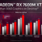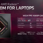 ในงาน CES 2023 ประกาศเปิดตัวการ์ดจอระดับกลางรุ่นใหม่สำหรับโน๊ตบุ๊คออกมาชุดใหญ่ โดยการ์ดจอเหล่านี้ถูกออกแบบมาโดยใช้สถาปัตยกรรม RDNA3 กระบวนการผลิต 6 นาโนเมตร อย่างที่เรารู้กันว่า Navi 31 มีขนาดที่เล็กเพียง 204 ตารางมิลลิเมตร ที่มาพร้อมกับตัวเข้ารหัสและถอดรหัสวิดีโอ AV1 และมีการเปิดตัวการ์ดจอซีรีส์ Redeon 6000 สถาปัตยกรรม RDNA2 เข้ามาอีก 3 รุ่นด้วยกัน มีการใช้พลังงานเพียงแค่ 50-80W เพียงเท่านั้น และมีหน่วยความจำ 4GB 64-bit ทั้งหมดพูดง่าย ๆ มันก็คือ GPU ระดับล่างนั่นเอง