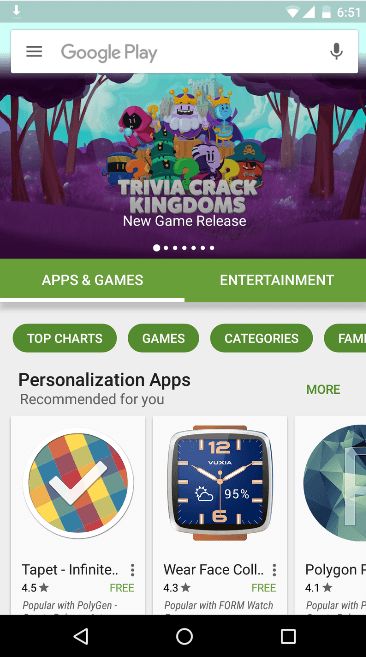 หน้าตาของ Play Store เวอร์ชั่นใหม่