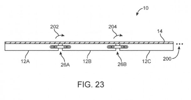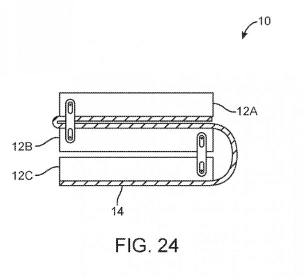 นอกจากนี้ยังมีภาพของการจด สิทธิบัตร หน้าจอพับหน้าจอได้ของ apple ที่สามารถพับได้มากถึง 3 ทบ ที่เหมาะมากสำหรับการใช้งานบน แท็บเล็ต เพราะเราจะย่อเครื่องได้มากเมื่อพับลง และสามารถกางเป็นหน้าจอขนาดใหญ่ได้