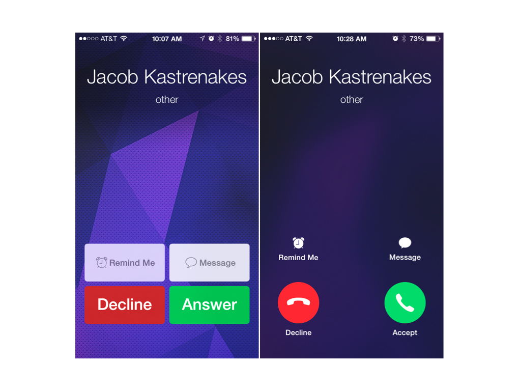- ปรับหน้าจอเมนูการรับสายใหม่ เน้นปุ่มที่เป็นวงกลมเข้ากับ UI ของ iOS 7 มากขึ้น