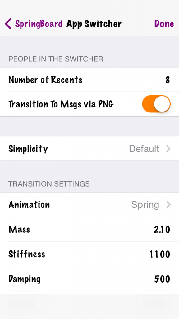 Here’s iOS 8′s internal “Alternate UI”. Purple tint, orange switches, funky font. I have no idea why Apple made this.