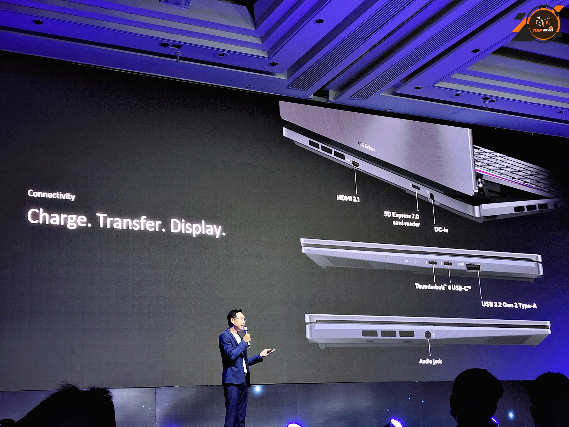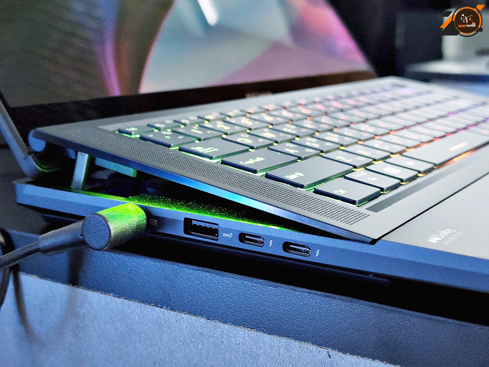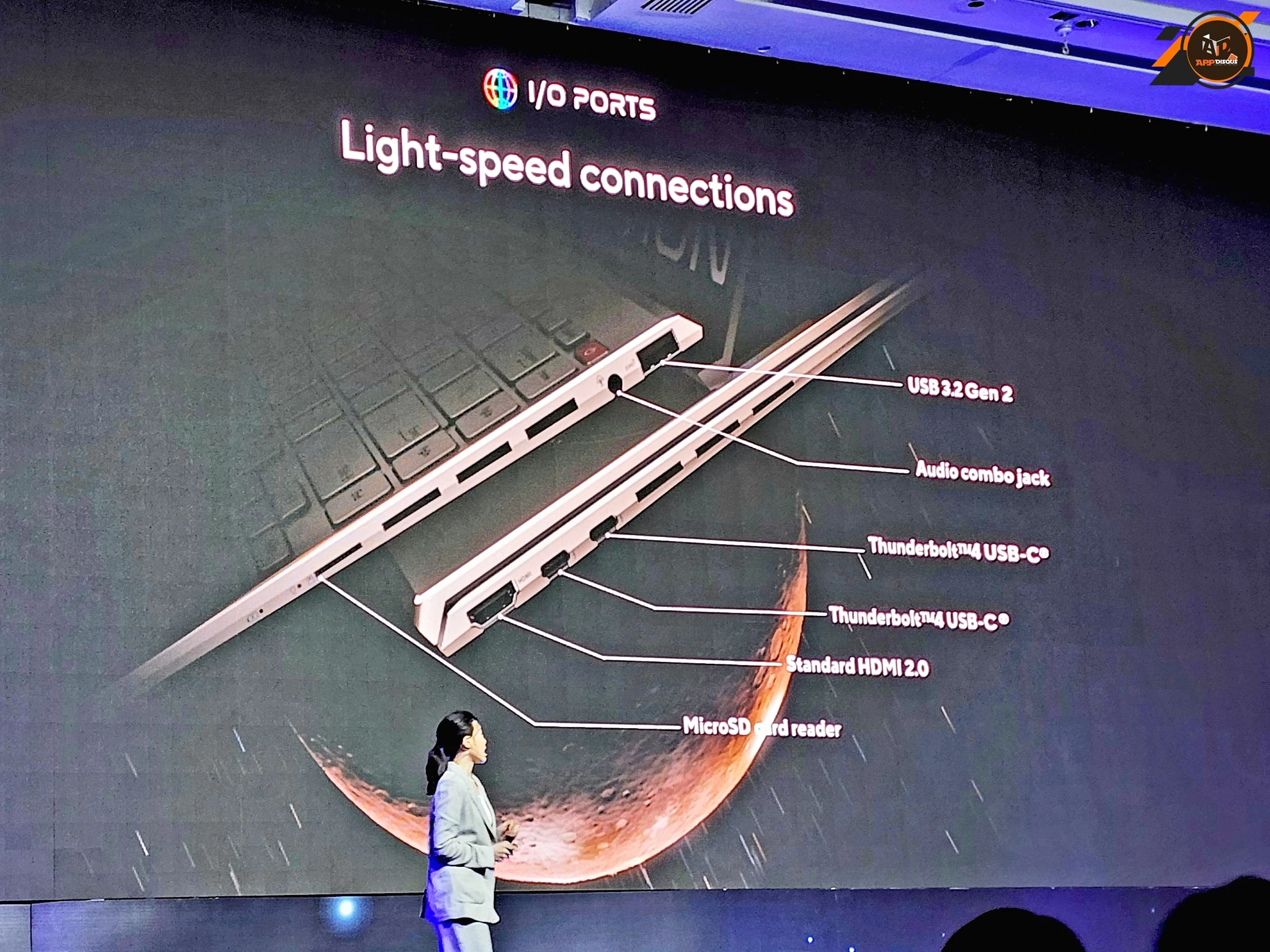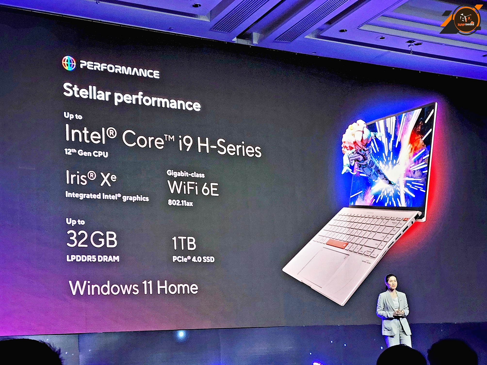 นอกจากนี้ยังนำเสนอโปรเซสเซอร์ Intel® Core™ i7-12700H ผ่านมาตรฐาน Intel EVO platform ตอบสนองได้เร็วขึ้น พร้อมการ์ดจอสูงสุด NVIDIA® GeForce® RTX™ 3050 Ti, RAM 16GB LPDDR5 on board, หน่วยเก็บข้อมูลสูงสุด 1TB M.2 NVMe™ PCIe® 4.0 Performance SSD เชื่อมต่ออุปกรณ์ได้หลากหลาย สะดวก ด้วยพอร์ต Thunderbolt™ 4 USB-C® ความเร็วสูงซึ่งรองรับการชาร์จเร็ว และสามารถต่อจอแยกความละเอียดระดับ 4K อีกทั้งยังมีพอร์ต HDMI และช่อง USB 3.2 Gen 2 Type-A