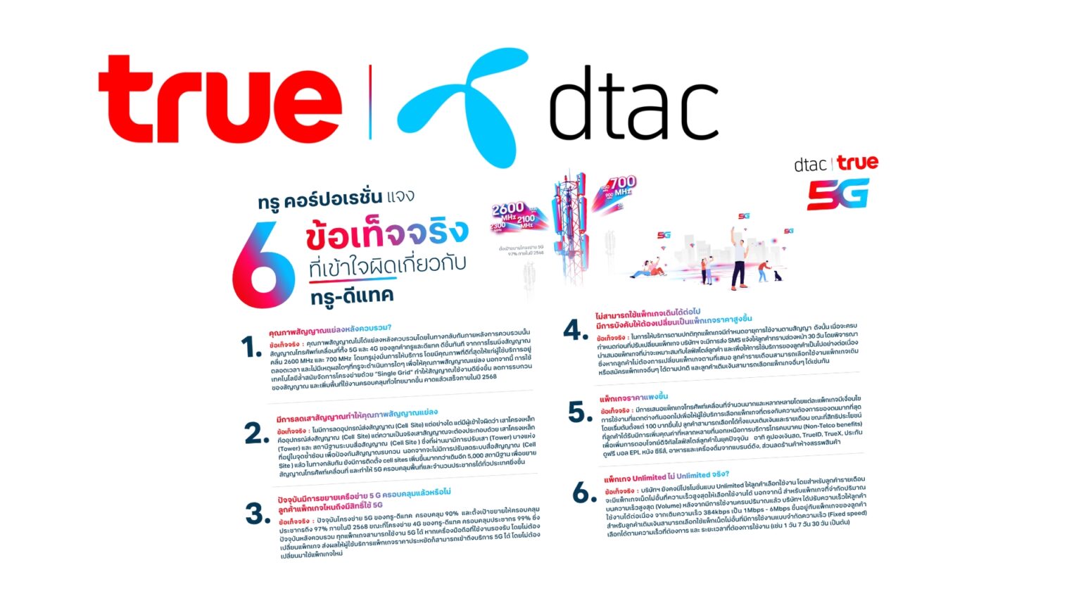 ทรู คอร์ปอเรชั่น แจง 6 ข้อเกี่ยวกับทรู-ดีแทค ทั้งข้อสงสัยในเรื่องคุณภาพสัญญาณและการเปลี่ยนแปลงในแพ็ก…