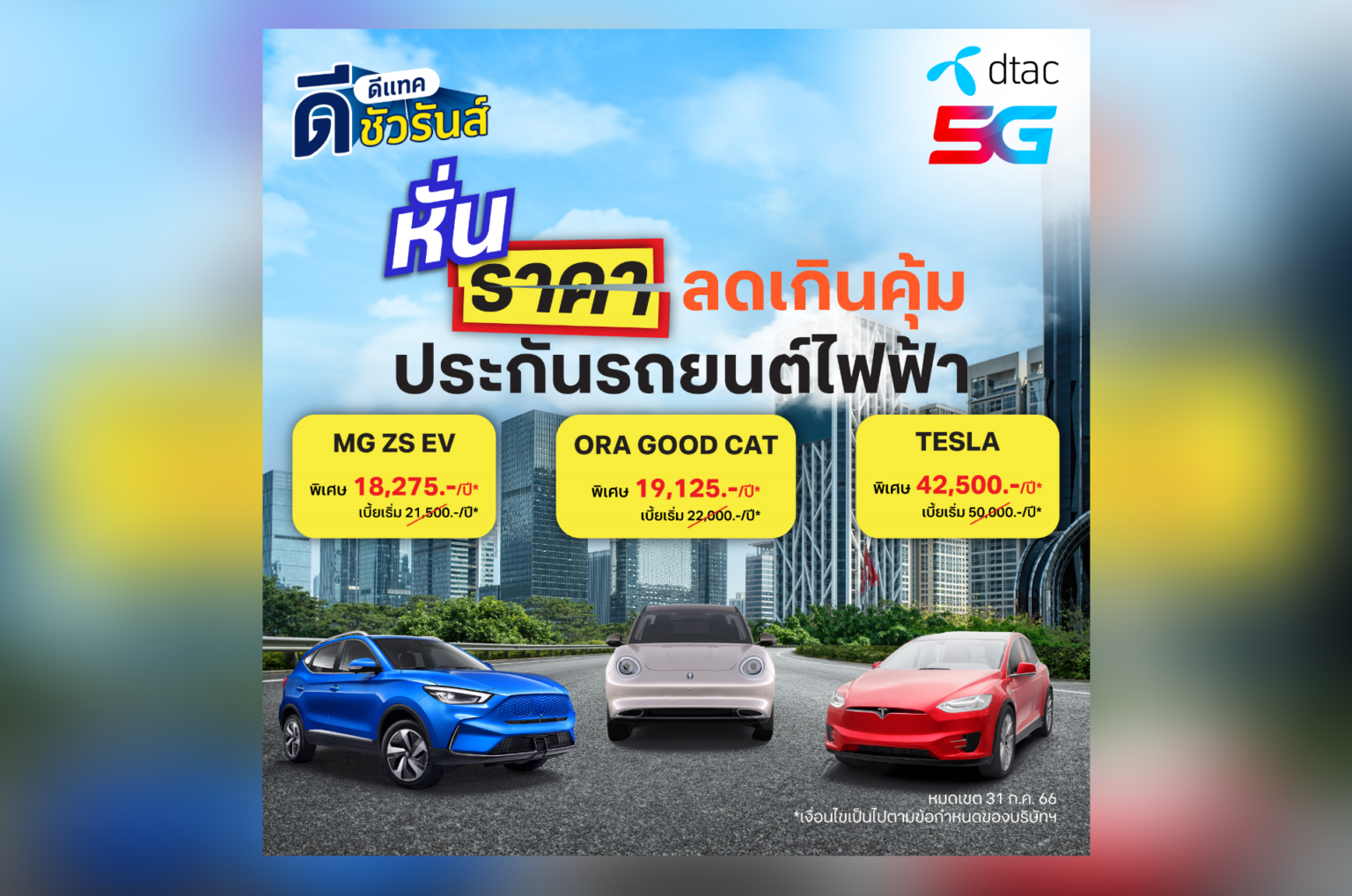 การันตีถูกที่สุด!! ประกันรถยนต์ไฟฟ้า ชั้น 1 – ดีแทค ดีชัวรันส์ ร่วมผลักดันระบบนิเวศดิจิทัลรถยนต์ไฟฟ้…