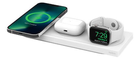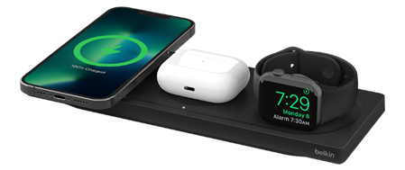 Belkin ออกแบบ BOOST↑CHARGE PRO 3-in-1 Wireless Charging Pad with MagSafe 15W มาเพื่อสามารถใช้งานได้แบบ 3-in-1 สามารถชาร์จ Apple Watch Series 7/8 และ Apple Watch Ultra ได้เร็วขึ้น 33% นอกจากนี้ยังรองรับการชาร์จกับ Apple Watch SE ด้วย ในขณะที่แท่นชาร์จ MagSafe สามารถชาร์จ iPhone 14 ได้อย่างรวดเร็ว ซึ่งเทคโนโลยี MagSafe ของ Belkin ได้รับการรับรองอย่างเป็นทางการจาก Apple ภายใต้มาตรฐาน “Made for MagSafe” ที่พร้อมมอบประสบการณ์ที่ดีเยี่ยมในการใช้งาน iPhone 14 ด้วยการชาร์จไร้สาย 15 วัตต์ พร้อมความความใส่ใจในทุกรายละเอียดในแบบสไตล์มินิมอลที่ดูเรียบหรู สามารถใช้งานได้ทุกที่และดูดีมีสไตล์ ราคา 6,990 บาท