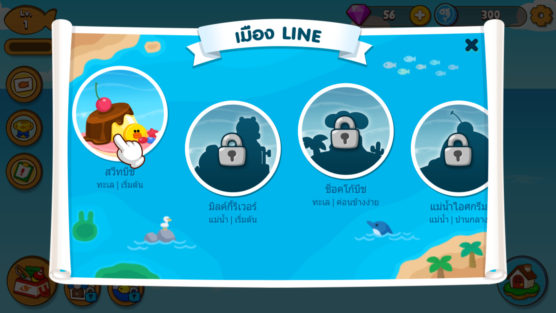 หลังจากซ่อมเรือเสร็จ กะลาสีบราวน์จะออกมาแนะนำเกาะที่เราจะไปซึ่งไม่ได้มีแค่เกาะเดียว เริ่มค้นจะต้องเล่นให้ถึงเลเวล 10 ก่อนถึงจะได้เปิดเกาะใหม่