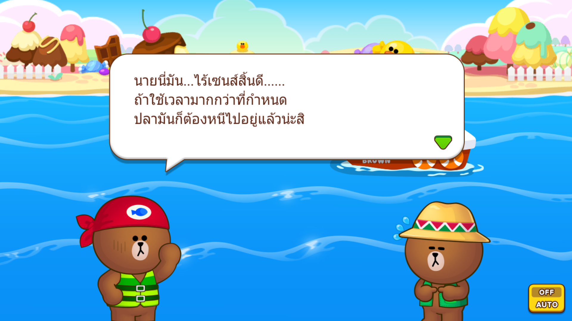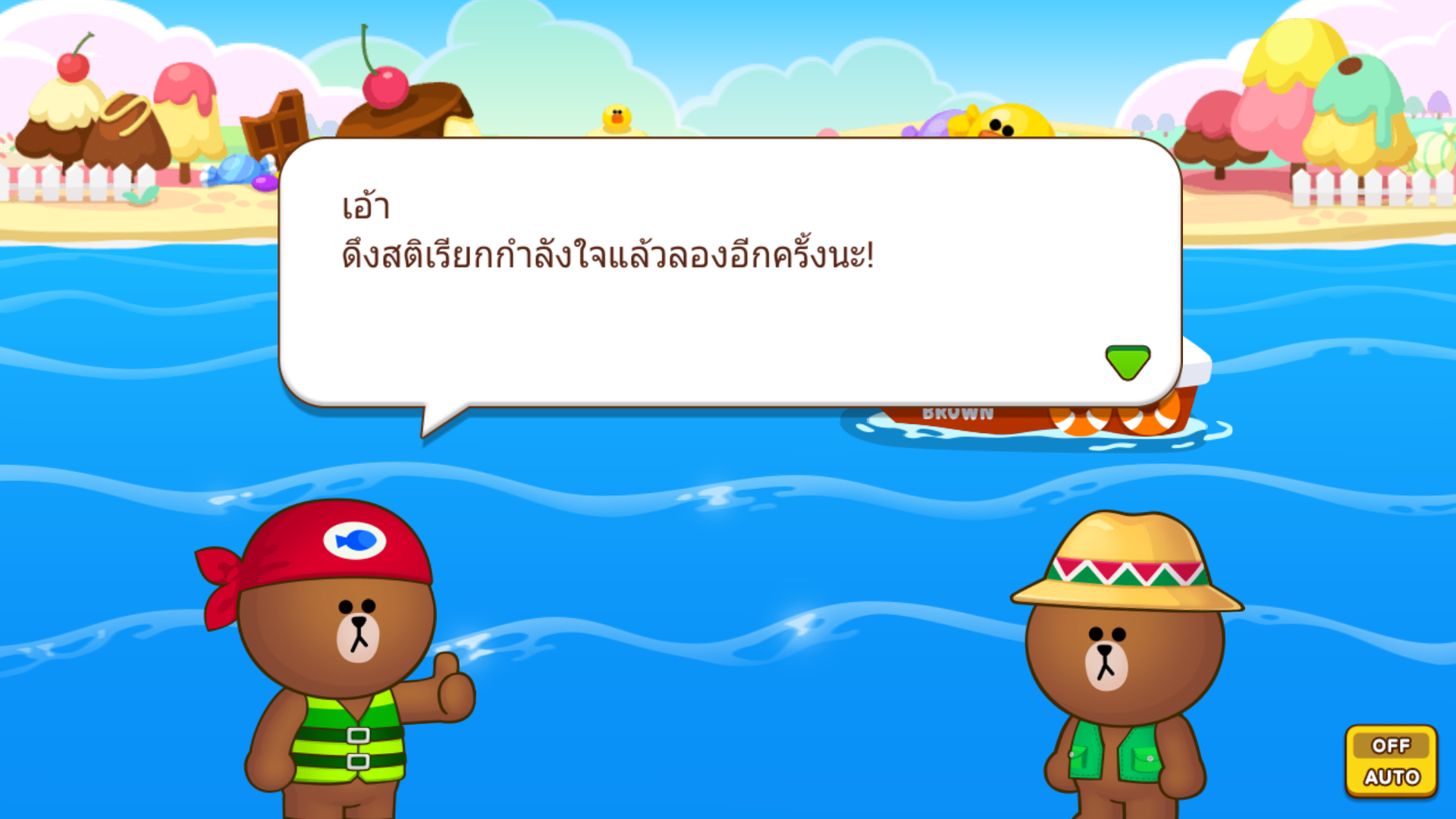 เล่นครั้งแรกก็เงอะงะ จับไม่ได้สักตัว จนหมดเวลาปลาหนีเท่านั้นยังไม่พอ เจ้าหมีนักตกปลายังมาพูดจาถากถางให้เจ็บช้ำน้ำใจอีก..หนอยแน่!!