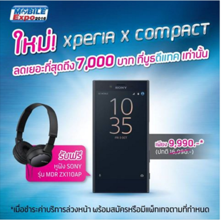 จับตาโปรแรง Mobile Expo 2016: Sony X Compact ต้องบูธ dtac เท่านั้น ลดค่าเครื่อง 7,000 เหลือ 9,900 พร้อมแถมหูฟัง Sony ไปอีกชุด