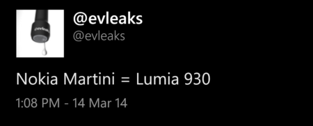 @evleaks ระบุ Nokia Martini คือ Nokia Lumia 930 คาดเปิดตัวหลังงาน BUILD 2014