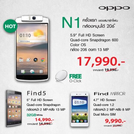 Oppo N1 ลดราคาเหลือ 17,990 บาทแล้วพร้อมรุ่นอื่นอีก 2 รุ่น