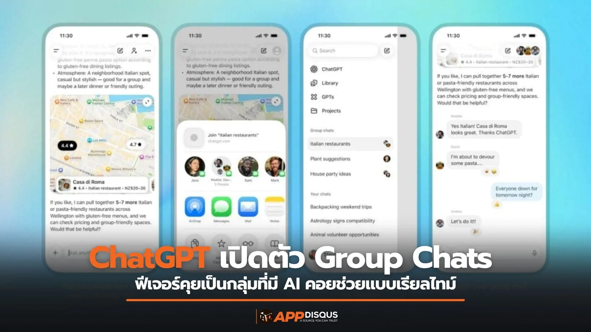 OpenAI เปิดตัว ChatGPT Group Chats ฟีเจอร์ใหม่ที่ให้ผู้ใช้คุยเป็นกลุ่มในห้องเดียวกัน ทำงานร่วมกับ AI ที่คอยช่วยเหลืออยู่ภายในแบบเรียลไทม์ รองรับทั้งผู้ใช้ในแพ็กเกจ ฟรี, Go, Plus และ Pro ในบางประเทศช่วงแรก