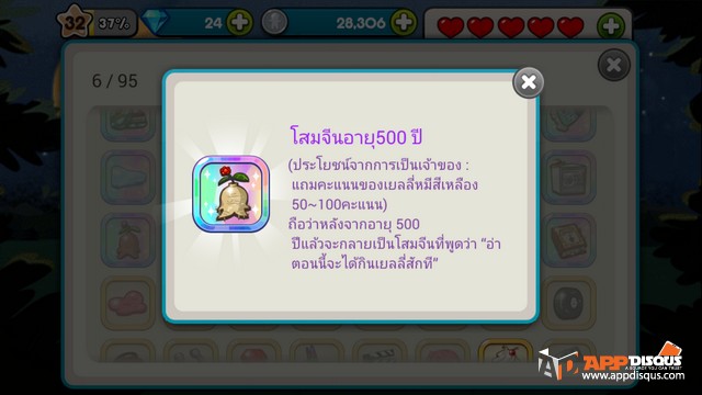- สมบัติโสมจีนอายุ 500 ปี : ได้มาจากการสุ่มเปิดหีบสมบัติสูงสุดเท่านั้น (หีบละ 25 คริสตัล) มีประโยชน์ทำให้ผู้สวมใส่ได้คะแนนเพิ่มมากขึ้นสูงสุด 100 คะแนน (+9) ต่อการเก็บเยลลี่หมีเหลือง 1 อัน (ทั้งเกมเก็บไปกี่อันก็คูณเข้าไป)