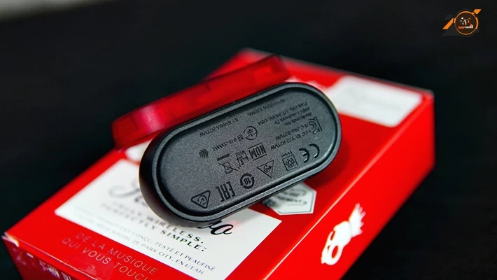 ปุ่มสีดำจะเป็นปุ่ม paining Mode กด ค้าง 5 วินาทีสำหรับการเชื่อมต่อไปยังสมาร์ทโฟน ปุ่มนี้ยังเป็นปุ่มเปิด/ปิด ตัวหูฟัง โดยการกดค้างที่ปุ่ม 3 วินาที
