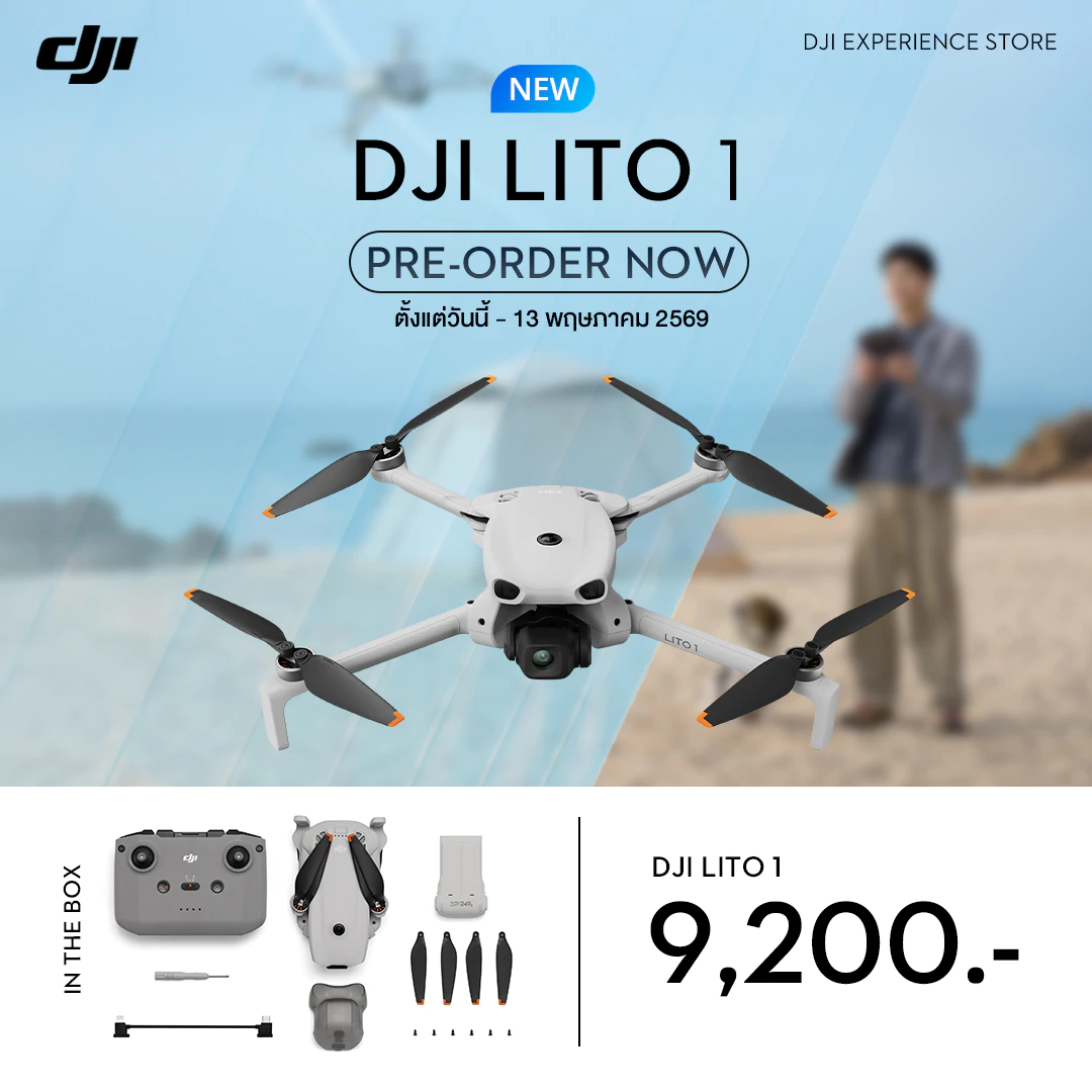 DJI Lito 1 และ DJI Lito X1 เปิดให้สั่งจองล่วงหน้าแล้วตั้งแต่วันนี้ ผ่าน DJI Experience Store และตัวแทนจำหน่ายอย่างเป็นทางการ โดยมีกำหนดวางจำหน่ายในวันที่ 13 พฤษภาคม 2026