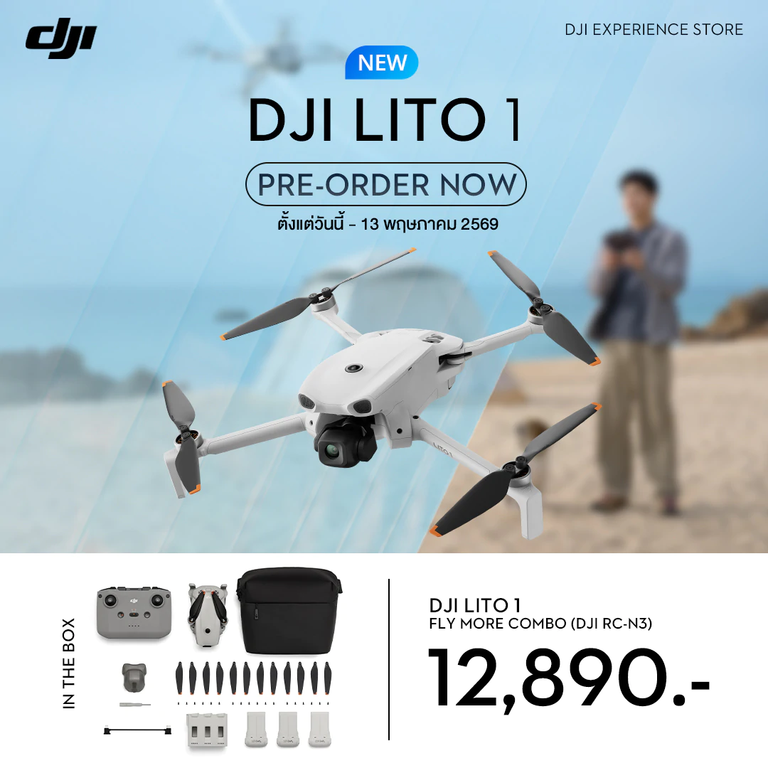 - DJI Lito 1 Fly More Combo (DJI RC-N3) วางจำหน่ายในราคา 12,890 บาท