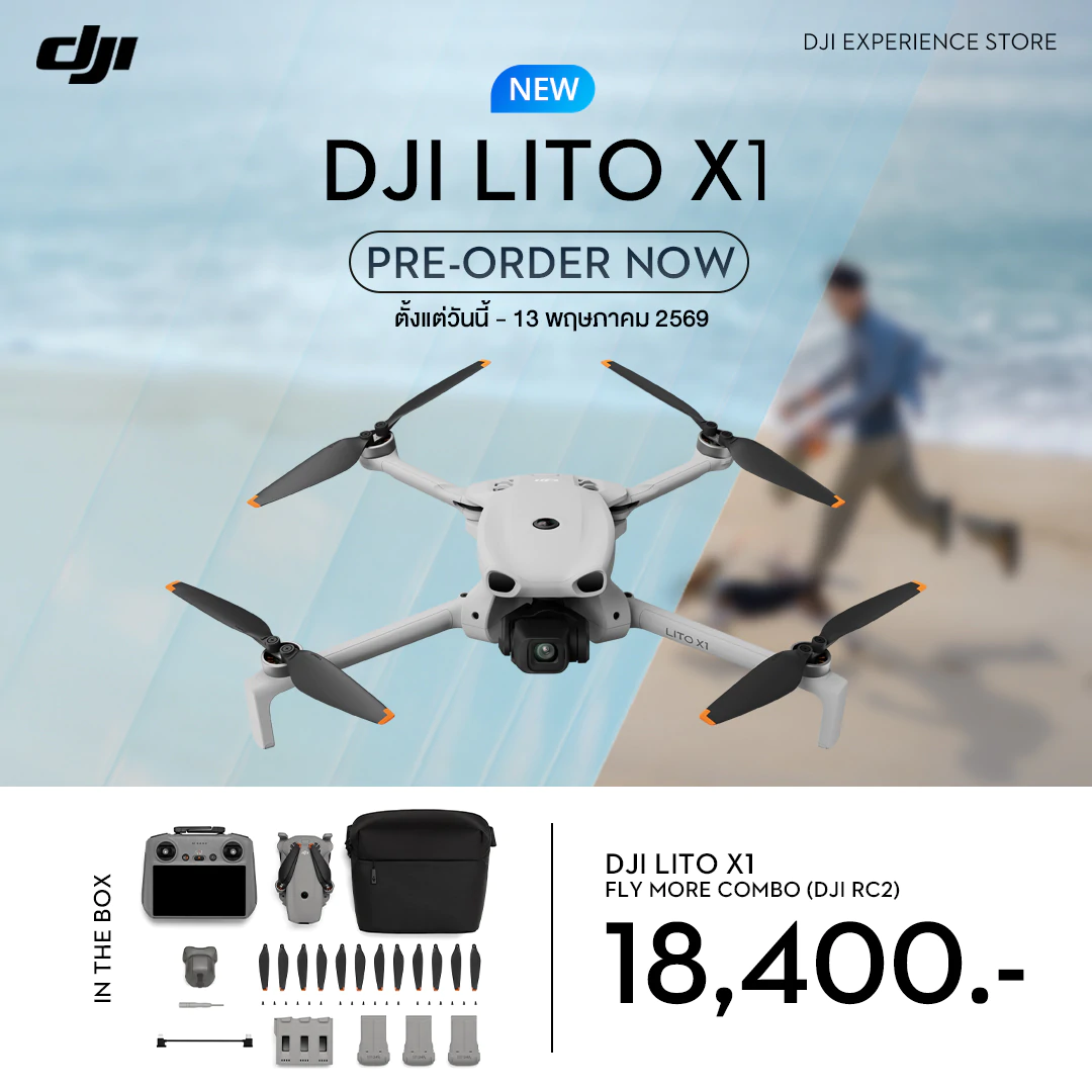 - DJI Lito X1 Fly More Combo Plus (DJI RC 2) วางจำหน่ายในราคา 20,690 บาท