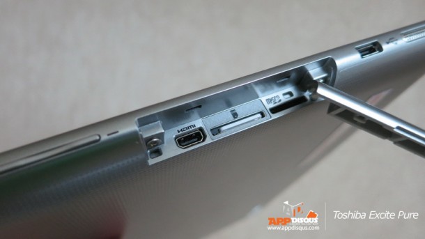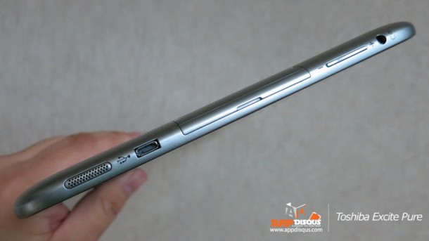 สิ่งที่เป็นจุดเด่นจริงๆ ของเครื่อง Excite Pure อยู่ที่ตั้งแต่ภายนอกของตัวของมันเอง นั้นคือเรื่องของแบรนด์และวัสดุงานประกอบ แม้ Excite Pure จะมาในราคาที่ต่ำกว่าตัวท็อบอย่าง Excite Write ถึงประมาณเจ็ดพันบาท แต่งานประกอบและวัสดุตัวเครื่องที่เลือกใช้ ให้มาในแบบจัดเต็มไม่ต่างกันครับ เป็นแท็บเล็ตแอนดรอยด์ที่ดูดีและมีความเป็น Business Gadget สูงมาก เอกลักษณ์แบบนี้มีออกมาไม่มากครับ ราคาหมื่นห้าแต่หน้าตาดูเกินราคาการประกอบแน่นหนา และฝาหลังที่เป็นรอยยากมากหลังจากผมลองทดสอบใช้งานมา