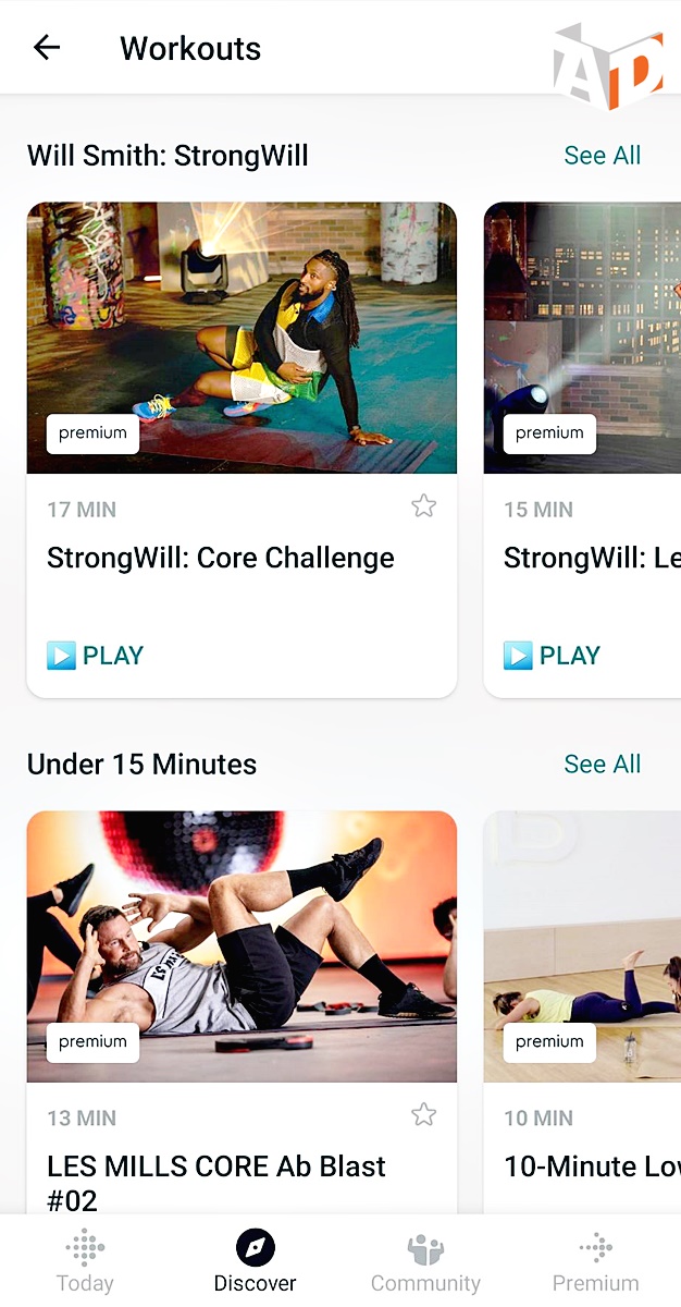 สำหรับคอนเทนต์เสียเงินสามารถเข้าถึงคอนเทนต์การออกกำลังกายแบบหนักหน่วงกับ Fitbit Premium กว่า 200 แบบจากเทรนเนอร์ที่ได้รับการรับรองและแบรนด์ดังต่าง ๆ เช่น Daily Burn, barre3, obé เป็นต้น ยังสามารถสนุกไปกับทีมเทรนเนอร์ของวิลล์สมิธในรูปแบบเวอร์ชวล เพื่อให้การออกกำลังกายของคุณนั้นมีความสนุกและดุเดือดมากยิ่งขึ้นกับหลักสูตร StrongWill ซึ่งจะนำเสนอโปรแกรมการออกกำลังกายเพื่อเรียกเหงื่อและกระตุ้นฮอร์โมนเอ็นดอร์ฟิน ถึง 6 รูปแบบ