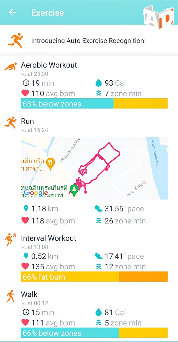 Active Zone Minutes เป็นตัวช่วยให้ผู้ใช้งานปรับเปลี่ยนความหนักเบาของการออกกำลังกายได้ โดยวัดจากกิจกรรมส่วนบุคคลที่นอกเหนือจากการก้าวเดิน ระบบนี้สามารถวัดระยะเวลาที่คุณใช้ในแต่ละระดับของอัตราการเต้นของหัวใจ ซึ่งช่วยให้คุณวัดกิจกรรมระดับปานกลางและหนัก เพื่อจะได้บรรลุเป้าหมายระยะเวลา 150 นาทีของการออกกำลังกายซึ่งจะช่วยเสริมสร้างสุขภาพของคุณ