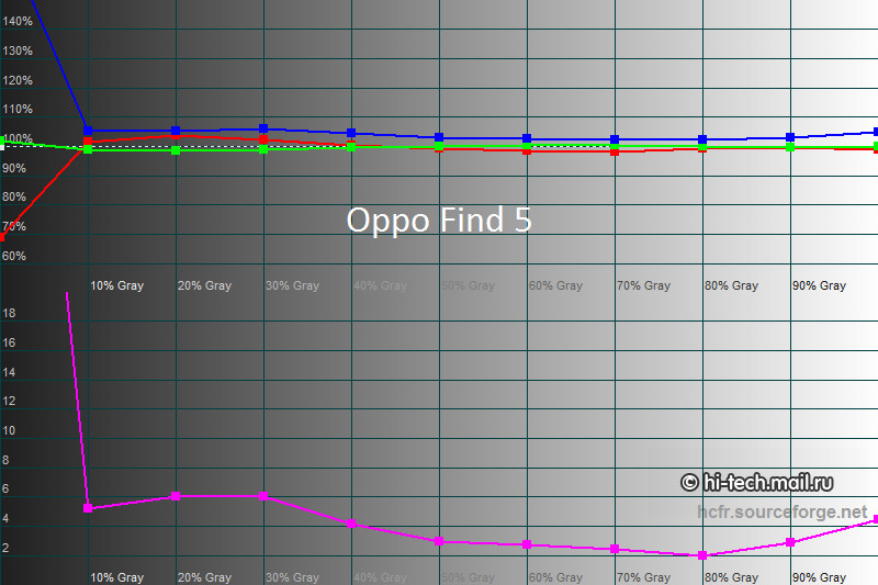 สำหรับ OPPO Find 5 มีค่าเฉลี่ยอยู่ที่ 2.2 ช่วยให้ได้ภาพที่สมจริงที่สุด แต่การแสดงผลของภาพอาจจ้า หรือมืดมากเกินไป ทั้งหมดนั้นขึ้นอยู่กับภาพที่แสดง