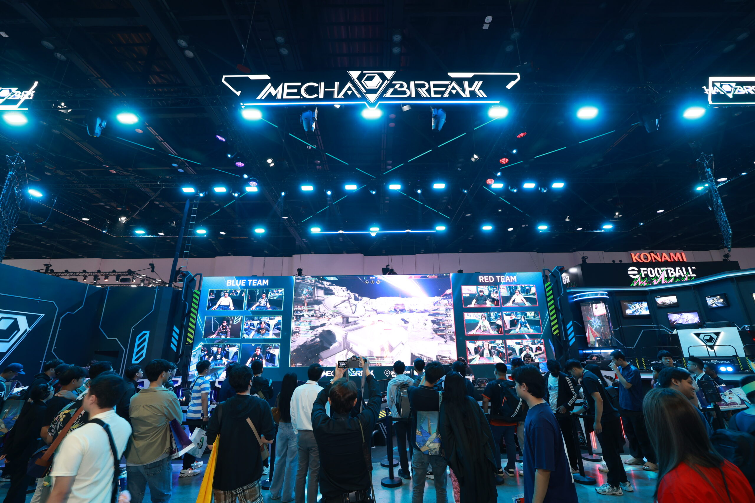 หนึ่งในเวทีที่น่าจะจับสายตาของคนเดินงานที่สุดก็คงไม่พ้น Mecha Break เวทีสว่างตาที่เอาโมเดลหุ่นในเกมมาตั้งโชว์กันแบบเท่ๆ พร้อมคอสเพลย์หุ่นยนต์ยืนอยู่หน้าจอยักษ์ที่จะแข่งเกม Mecha Break กันอย่างเมามันส์ แถมมี Merchandise ให้ซื้อด้วย!