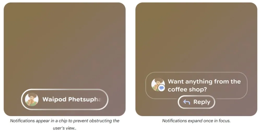 แนวทางสำหรับนักพัฒนายังระบุให้หลีกเลี่ยงมุมแหลมในองค์ประกอบ UI และคำนึงถึงการใช้สีบนจอโปร่งใส โดยสีเขียวใช้พลังงานต่ำที่สุด ส่วนสีน้ำเงินใช้พลังงานสูงที่สุด พร้อมแนะนำให้ลดจำนวนพิกเซลที่สว่างเพื่อลดความร้อนและการใช้แบตเตอรี่ เอกสารชุดนี้จึงเป็นภาพรวมสำคัญของประสบการณ์ Android ยุคใหม่บนอุปกรณ์สวมใส่รูปแบบแว่นตา