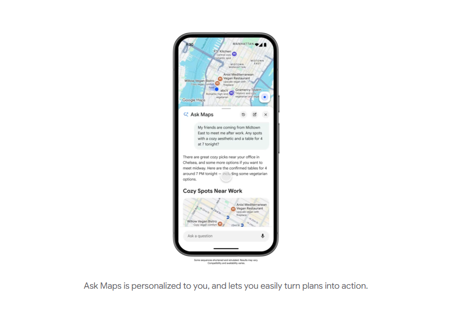 Google เปิดตัวฟีเจอร์ใหม่ “Ask Maps” บน Google Maps ใช้ AI จาก Gemini ช่วยค้นหาสถานที่แบบสนทนา พร้อมแนะนำเส้นทางและข้อมูลเชิงลึก เริ่มทยอยใช้งานในสหรัฐฯ และอินเดียแล้วบน Android และ iOS