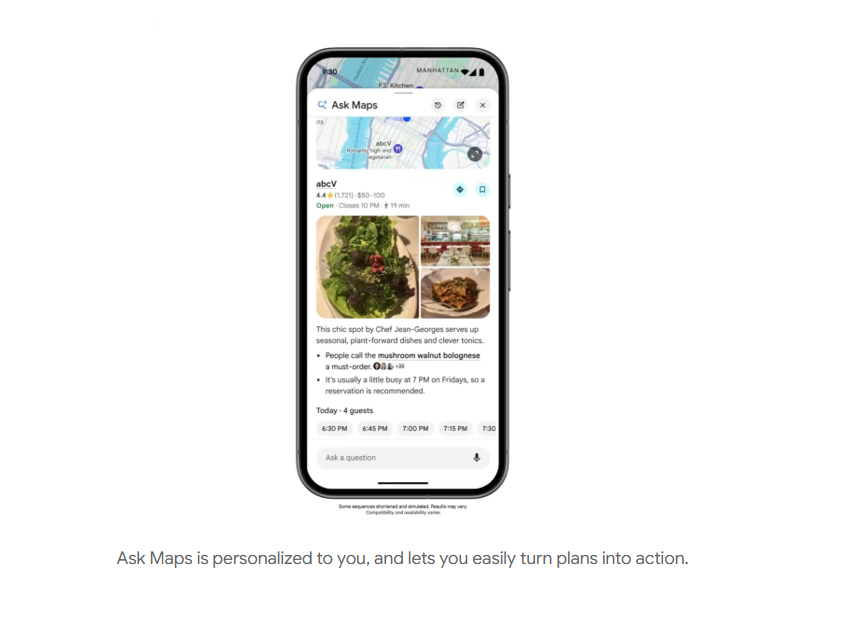 Ask Maps ขับเคลื่อนด้วยโมเดล Gemini ซึ่งสามารถวิเคราะห์ข้อมูลจากสถานที่กว่า 300 ล้านแห่งทั่วโลก รวมถึงรีวิวจากผู้ใช้งานมากกว่า 500 ล้านบัญชี ทำให้สามารถค้นหาสถานที่ได้มากกว่าแค่ชื่อหรือประเภท เช่น “มีสนามเทนนิสที่เปิดไฟตอนกลางคืนไหม” หรือ “มีร้านที่สามารถชาร์จมือถือแบบไม่ต้องต่อคิวนั่งร้านกาแฟหรือเปล่า”