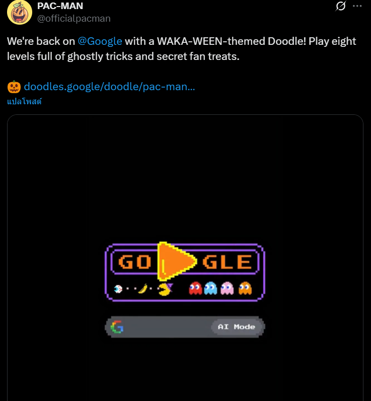 Google เปิดฉลองวิดีโอเกม Pac-Man ครบรอบ 45 ปีด้วย Google Doodle แบบเล่นได้จริงบนหน้าแรก ให้แฟนเกมสนุกกับด่านคลาสสิก 4 ด่าน และด่านพิเศษสไตล์ “บ้านผีสิง” อีก 4 ด่านที่ออกแบบโดย Google และ Bandai Namco ผู้เล่นสามารถเข้าไปเล่นได้โดยตรงผ่านหน้า Google ตลอดช่วงเวลาที่กำหนด ฉลองตำนานเกมเขาวงกตสุดไอคอนิกที่เริ่มต้นมาตั้งแต่ปี 1980