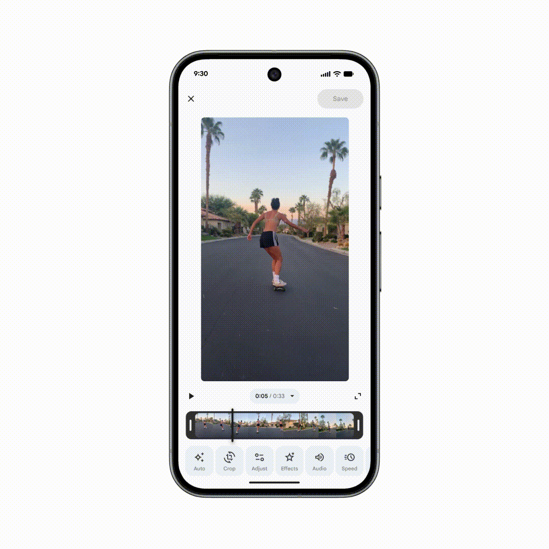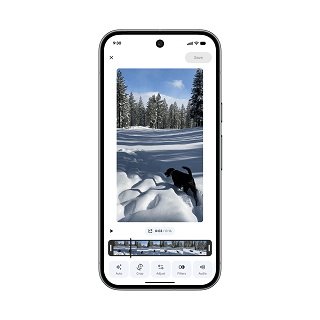 ตัวแก้ไขวิดีโอแบบใหม่ถูกตั้งเป็นเครื่องมือแก้ไขเริ่มต้นบน Android เพื่อให้คุณปรับแต่งคลิปวิดีโอแต่ละคลิปได้อย่างรวดเร็วและง่ายดาย เพียงเปิดวิดีโอจากแกลเลอรีแล้วแตะที่ปุ่มแก้ไขเพื่อเริ่มใช้งาน นอกจากนี้ ด้วยตัวแก้ไขใหม่ คุณยังสามารถเพิ่มเพลงและข้อความให้กับคลิปเดี่ยวได้ ทำให้วิดีโอมีความเป็นส่วนตัวและสไตล์เฉพาะตัวมากยิ่งขึ้น