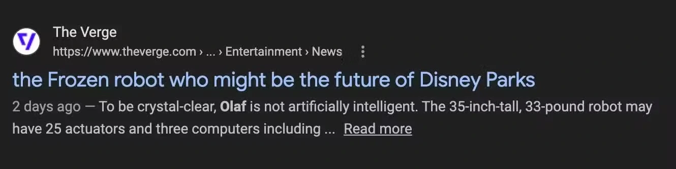 ถูกพบว่ากำลังทดสอบฟีเจอร์ใหม่ใน Search ที่ใช้ AI สร้างพาดหัวข่าวขึ้นมาแทนพาดหัวจริงของเว็บไซต์ที่ปรากฏในผลการค้นหา โดยรายงานจาก The Verge ระบุว่าพาดหัวที่ AI เขียนขึ้นบางครั้ง “บิดความหมาย” จากต้นฉบับจนทำให้ผู้อ่านเข้าใจผิดได้ง่าย