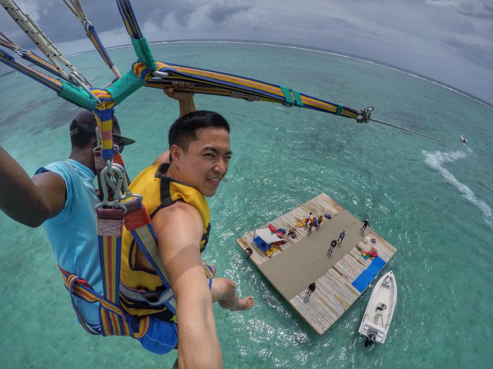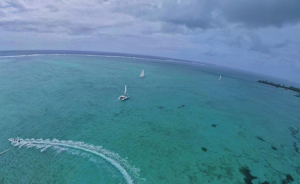 วู๊ววววว ทั้งสนุก ทั้งสวยสมชื่อการเป็นจุด Parasailing ที่สวยที่สุดในโลกจุดหนึ่งเลยครับ ไม่มีวิวเมืองให้รกหูรกตา หมู่เกาะน้อยใหญ่ เรือใบสีขาว และน้ำทะเลสีฟ้ากว้างใหญ่ไฟศาลล้วนๆ คุ้มค่า 3000 บาทมาก (ใครแค่อยาก Parasailing เฉยๆ โดยไม่ได้อยากเห็น Panoramic View ซึ่งกล้องเก็บไม่ได้แน่ๆ แต่ตาจะเก็บได้ก็เลือกแผนที่ถูกลงได้ครับ ซึ่งราคาจะอยู่ที่ 2000 MUR เล่นได้ประมาณ 3 นาที ในขณะที่ 3000MUR นั้นจะได้เล่นอยู่ประมาณ 7 – 10 นาทีครับ)