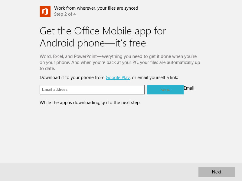2. คุณสมบัติอีกประการของ Phone companion คือ การแนะนำแอพหรือบริการต่างๆของ Microsoft ที่อยู่ในแต่ละระบบปฏิบัติการขึ้นมาให้ ซึ่งนอกจากแนะนำบริการหรือแอพต่างๆแล้ว Phone companion ยังสามารถให้เราส่งลิงค์สำหรับการดาวน์โหลดแอพของ Microsoft ไปยังมือถือของเราเพื่อติดตั้งจาก store ของแต่ละระบบได้อีกด้วย