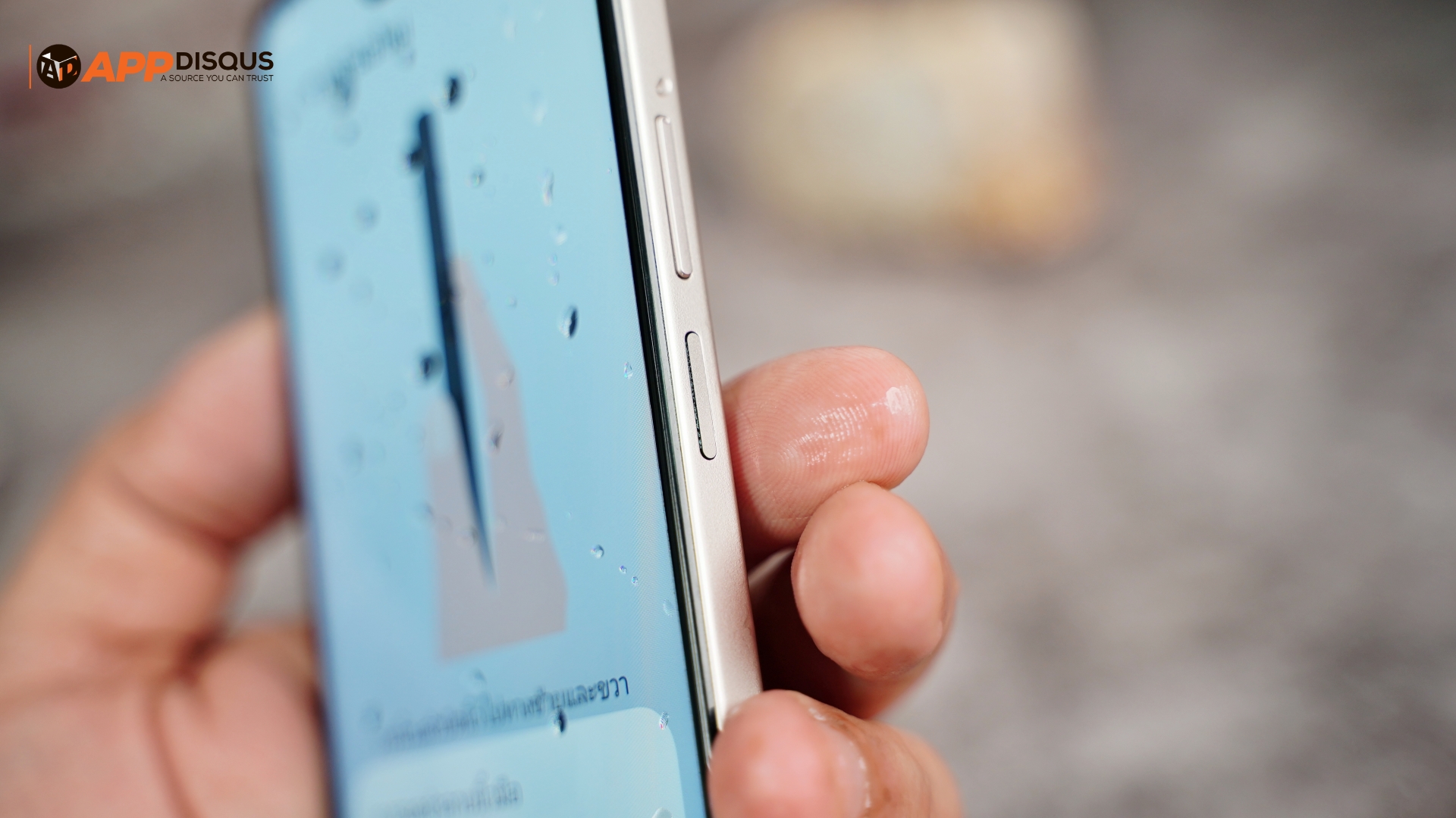 รองรับการสแกนลายนิ้วมือที่ปุ่มพาวเวอร์ด้านข้างเครื่องตัวเครื่อง ให้ฟีลแข็งแรง จับแล้วแน่นมือ ไม่ต้องกังวลเวลาวางบนพื้นผิวแข็งหรือใช้งานในสถานการณ์ที่มีน้ำกระเด็น ซึ่งเหมาะกับผู้ใช้ที่ต้องการมือถือทน ๆ สำหรับใช้งานทุกวัน แม้ตัวเครื่องจะดูบางเบา