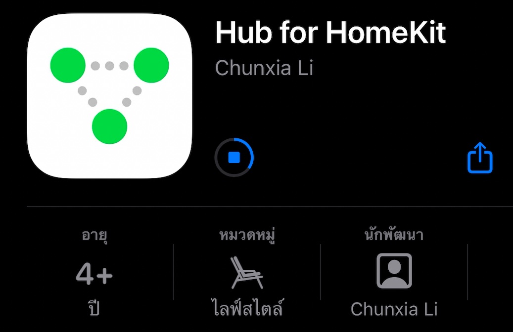 - ดาวน์โหลด Application ที่ชื่อ Hub for Homekit จาก App Store ลงบน iPhone/iPad ที่ต้องการให้ทำหน้าที่เป็น Homebridge Server โดยต้องใช้งาน iOS13 ขึ้นไปเท่านั้น