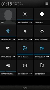 Quick Setting อีกหนึ่งฟังชั่นพื้นฐานของ Android 4.2 ซึ่งเข้ามากลบจุดอ่อนของเครื่อง HTC ได้อย่างพอดิบพอดี เพราะ Quick setting คือหน้าเพจใหม่ ที่เราสามารถเข้าถึงตัว Toggle เปิดปิดฟังชั่นต่างๆขอตัวเครื่องได้อย่างรวดเร็ว วิธีเรียกใช้ก็คือการดึงส่วน Status Bar ด้านบนลงมาด้วยนิ้วสองนิ้วพร้อมกัน