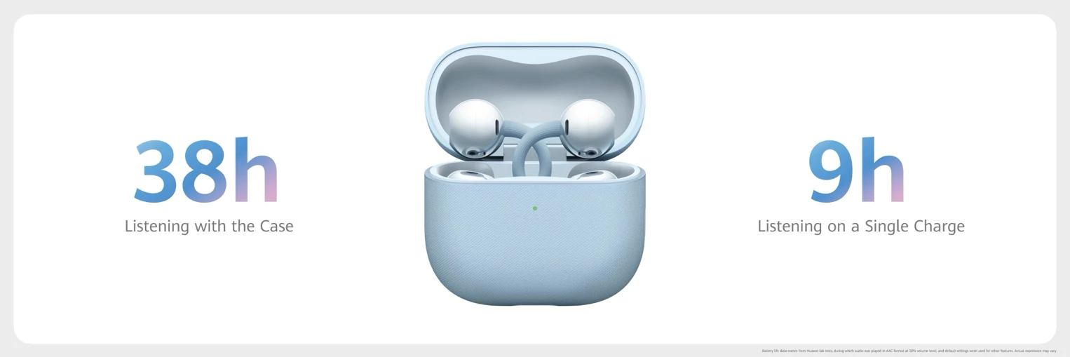 แบตเตอรี่ที่มีความทนทานของ HUAWEI FreeClip 2 แบ่งเบาภาระให้ผู้ใช้ไม่ต้องชาร์จบ่อย สามารถฟังเพลงได้นานสูงสุด 9 ชั่วโมงต่อการชาร์จหนึ่งครั้ง และรวมสูงสุด 38 ชั่วโมงเมื่อใช้ร่วมกับเคสชาร์จ โดยรองรับ HUAWEI SuperCharge ที่เมื่อชาร์จเพียง 10 นาที ก็จะได้พลังงานฟังเพลงสูงสุด 3 ชั่วโมง ชาร์จได้ทั้งแบบไร้สายและกับแท่นชาร์จนาฬิกา สร้างความอุ่นใจให้ผู้ใช้ตลอดวันตั้งแต่งานประชุมยาวไปจนถึงการเดินทางที่ยาวนาน