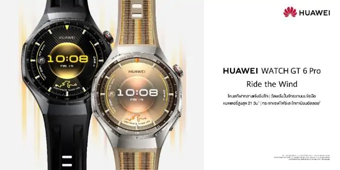 หัวเว่ย คอนซูมเมอร์ บิสสิเนส กรุ๊ป (ประเทศไทย) ประกาศเปิดตัว HUAWEI WATCH GT 6 Series สมาร์ทวอทช์แฟชันรุ่นใหม่ล่าสุดอย่างเป็นทางการในประเทศไทย ภายใต้คอนเซ็ปต์ “Ride the Wind” ที่ผสานดีไซน์ล้ำสมัยเข้ากับสมรรถนะขั้นสูงอย่างลงตัว พร้อมไฮไลท์พิเศษเปิดตัว “ใบเฟิร์น-พิมพ์ชนก ลือวิเศษไพบูลย์” ซูเปอร์สตาร์แถวหน้าของเมืองไทย มาร่วมสะท้อนภาพลักษณ์ของสมาร์ทวอทช์แห่งอนาคตที่หรูหราเปี่ยมสไตล์ พร้อมฟีเจอร์ก้าวล้ำเพื่อสายสปอร์ตและแอดเวนเจอร์ โดยเฉพาะกีฬาสายเอ็กซ์ตรีมทั้งวิ่ง ปั่นจักรยาน กอล์ฟและดำนํ้า ด้วยโหมดออกกำลังกายมากกว่า 100 โหมด อีกทั้งยังปลดล็อคข้อมูลสำคัญด้านสุขภาพไปอีกระดับ และเทคโนโลยี TruSleep, Health Insight และ Emotional Wellbeing พร้อมแบตเตอรี่ยาวนาน 21 วัน และรองรับการใช้งานคู่กับสมาร์ทโฟนทั้ง iOS และ Android ผ่านแอปพลิเคชัน HUAWEI Health วางจำหน่ายแล้วในราคาเริ่มต้น 6,990 บาท พร้อมของสมนาคุณรวมมูลค่าสูงสุด 8,146 บาท เมื่อซื้อระหว่าง 2 ตุลาคม 2568 – 2 พฤศจิกายน 2568 ที่ร้านค้าที่ร่วมรายการ