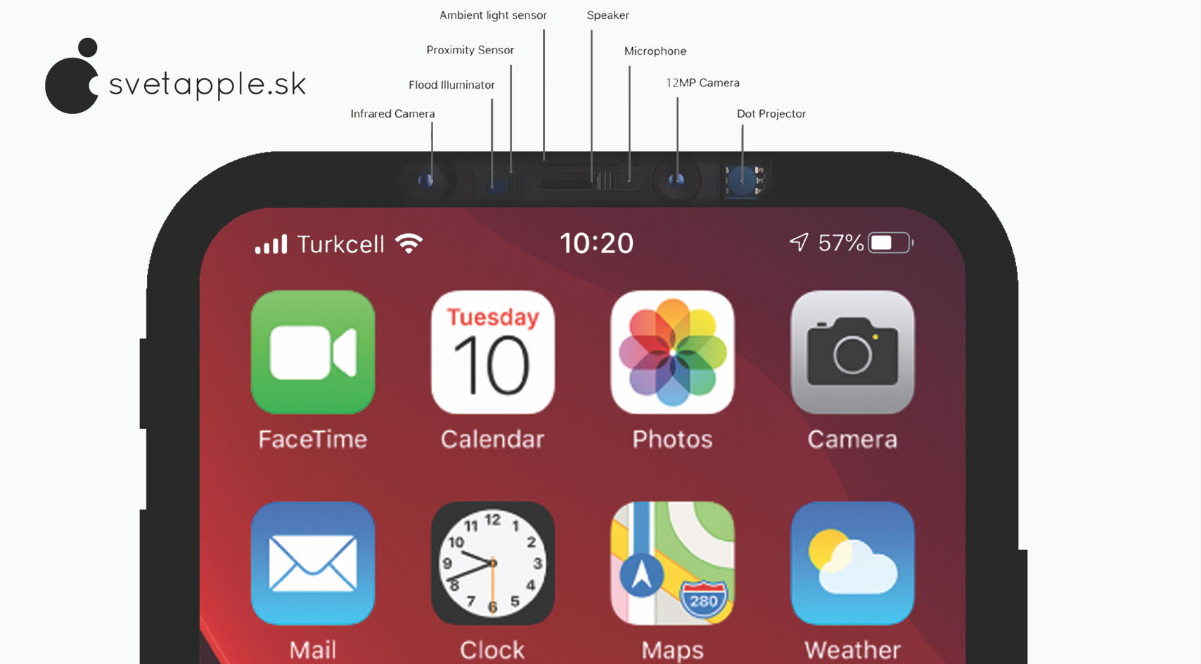 จากภาพข้างต้นจะเห็นว่าตัวเครื่องยังมีถากซิมที่ด้านข้างเหมือนเดิม ที่น่าสนใจคือ Apple น่าจะสามารถพัฒนาให้ Face ID มีโครสร้างที่เล็กลงมาพอจนย้ายไปอยู่ที่ขอบด้านบนได้ โดยที่ขอบของหน้าจอไม่หนามากนัก รวมถึงลำโพงสำหรับฟังการสนาทนาก็อยู่ที่ขอบหน้าจอด้านบนเช่นเดียวกัน