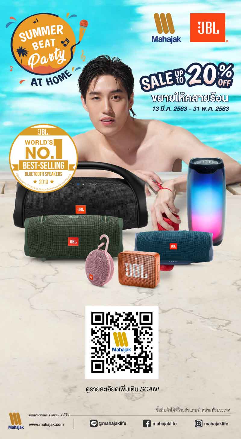 ขยายระยะเวลาโปรโมชั่นเข้าสู่ช่วง Summer กับโปรฯสุดว้าวกับ JBL Summer Beat Party Promotion Sale up to 20% ขยายระยะเวลาโปรโมชั่นสุดว้าวจากเรากับ JBL Summer Beat Party Promotion ลดสูงสุดกันถึง 20% โดยรายละเอียดสินค้าที่ร่วมรายการมีดังต่อไปนี้