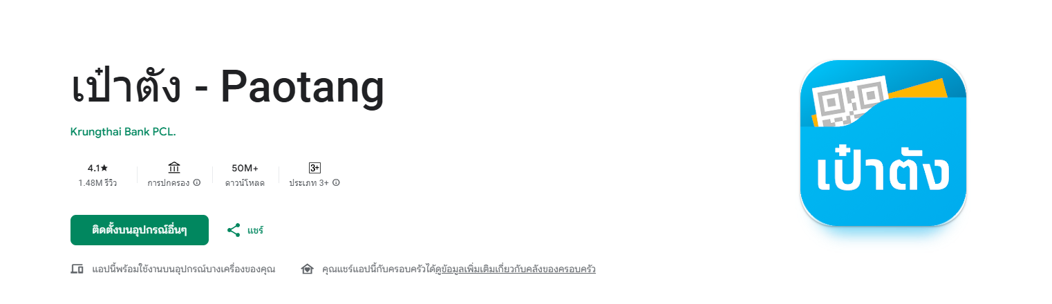 ติดตั้งแอป เป๋าตัง (Paotang / G-Wallet) เพื่อใช้ในการรับสิทธิและชำระเงิน (ดาวน์โหลดบนมือถือ ANdroid / ดาวน์โหลดบนมือถือ iPhone)