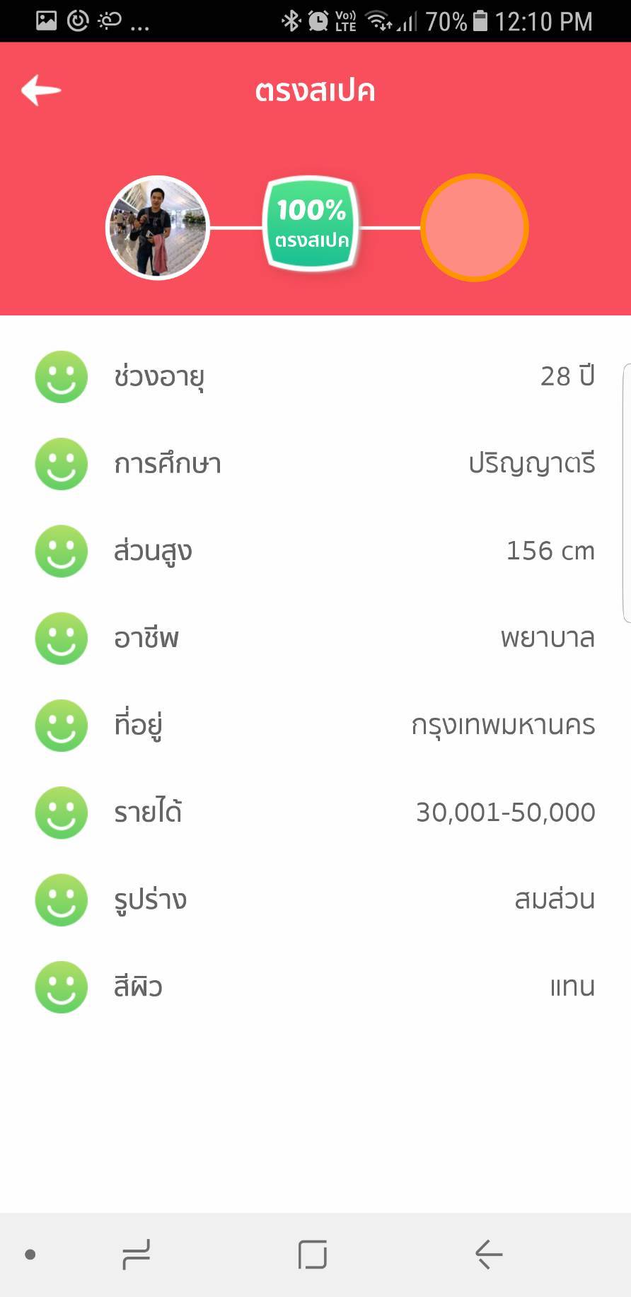 ทั้งนี้ไม่ว่าจะเลือกเป็นแบบหน้าหนึ่งแสดงคนเดียวหรือแสดงเป็นลิสต์รายชื่อ แอพพลิเคชั่นจะแสดงรายชื่อคนที่สมพงษ์กับเราและอยู่ใกล้เราที่สุดออกมาให้เห็นพร้อมกับเปอร์เซ็นความตรงสเป็กหรือเปอร์เซ็นความสมพงษ์ของดวง พร้อมรายละเอียดเพิ่มเติมในส่วนของอาชีพและรายรับของเจ้าของบัญชีนั้นๆ และนอกจากนี้เพื่อนๆ ยังสามารถเลือกเริ่มสนทนากับเจ้าของบัญชี หรือจะเลือกกดถูกใจเอาไว้เพื่อให้แอพพลิเคชั่นแจ้งเตือนอีกฝั่งว่าเราสนใจเค้า และหากเค้าสนใจเราก็ด้วยก็เผื่อเค้าจะเริ่มสนทนากับเรากลับมาหากเราไม่ทักทายไปก่อน